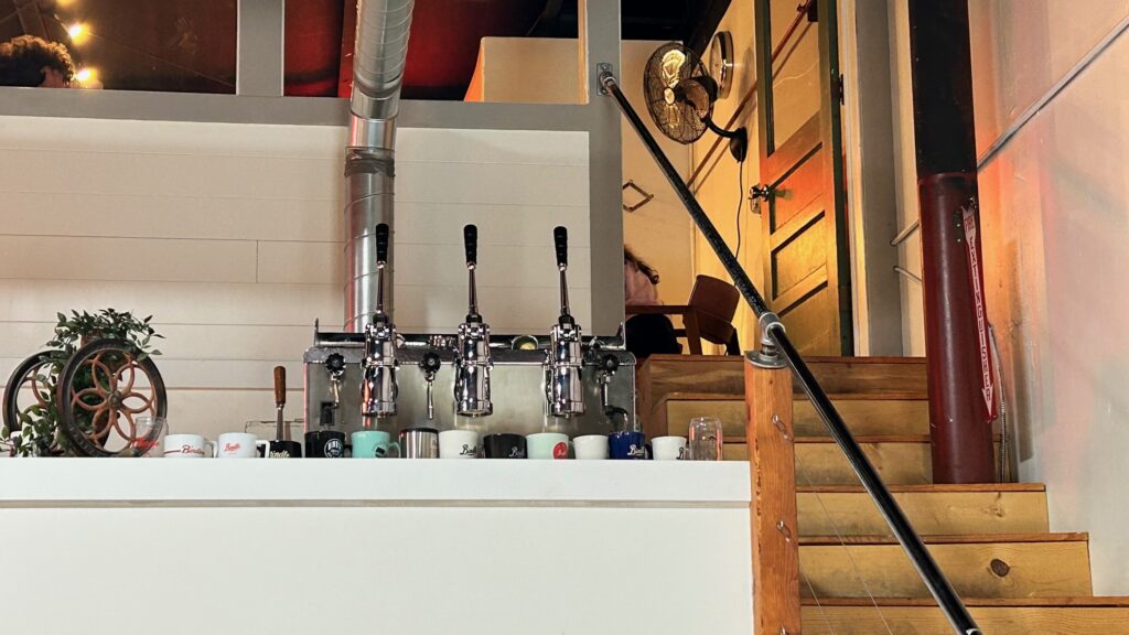 The spacious lobby offers plenty of comfortable seating, creating a cozy atmosphere. The lighting is just right, not too bright or too dark. Upstairs, there’s a loft that doubles as a seating area, and you can even catch the coffee roaster in action. If you’re lucky enough to witness the roasting process, you’ll be enveloped in the fresh aroma of freshly brewed coffee.