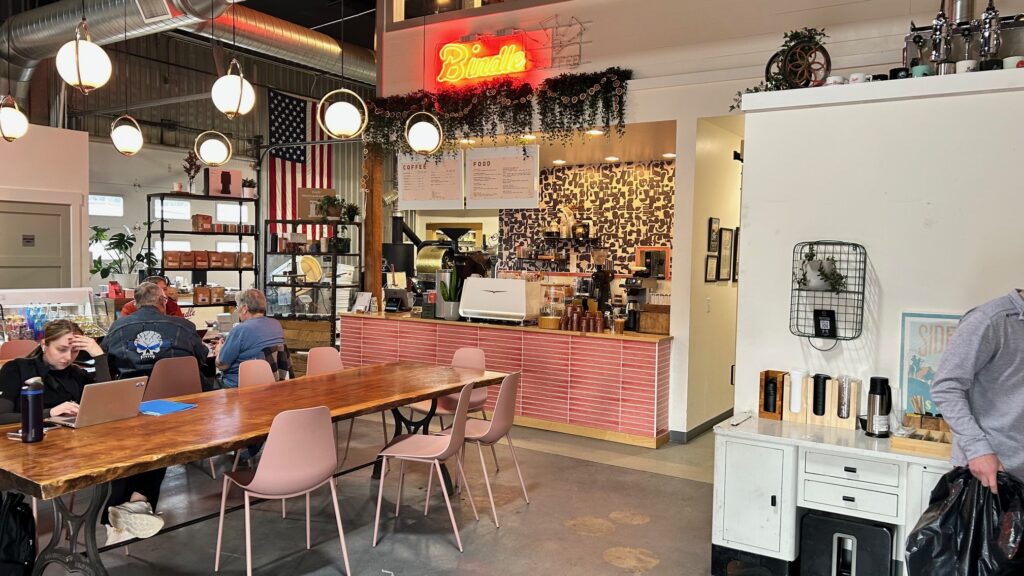Nestled in an industrial park on the back side of a building, Bindle Roasting Company is Fort Collins’ little secret. I was pleasantly surprised to find it bustling with happy customers on a Tuesday morning, sipping coffee, chatting with friends, and tackling homework or computer work. This roastery and coffee shop combo is a must-visit for coffee enthusiasts.
