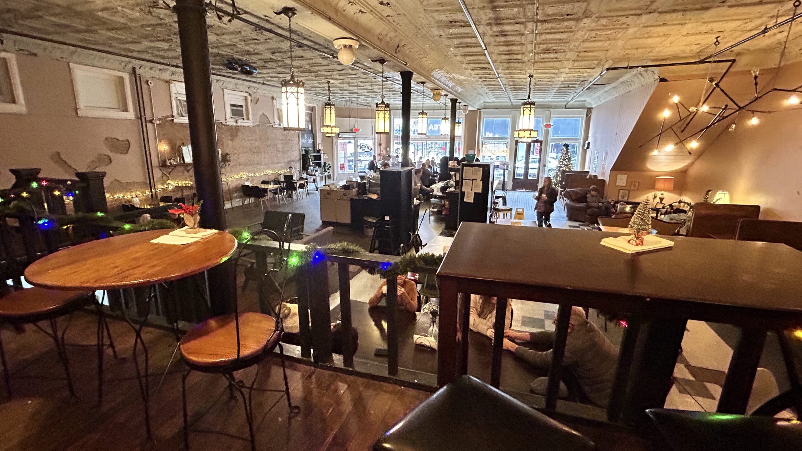 The original building was a store and merchandise, so you can see the floor plan and imagine how it was back then. This clever design creates different seating areas that feel private and spacious, making you want to linger. There are couches and large tables set up for this very purpose.
